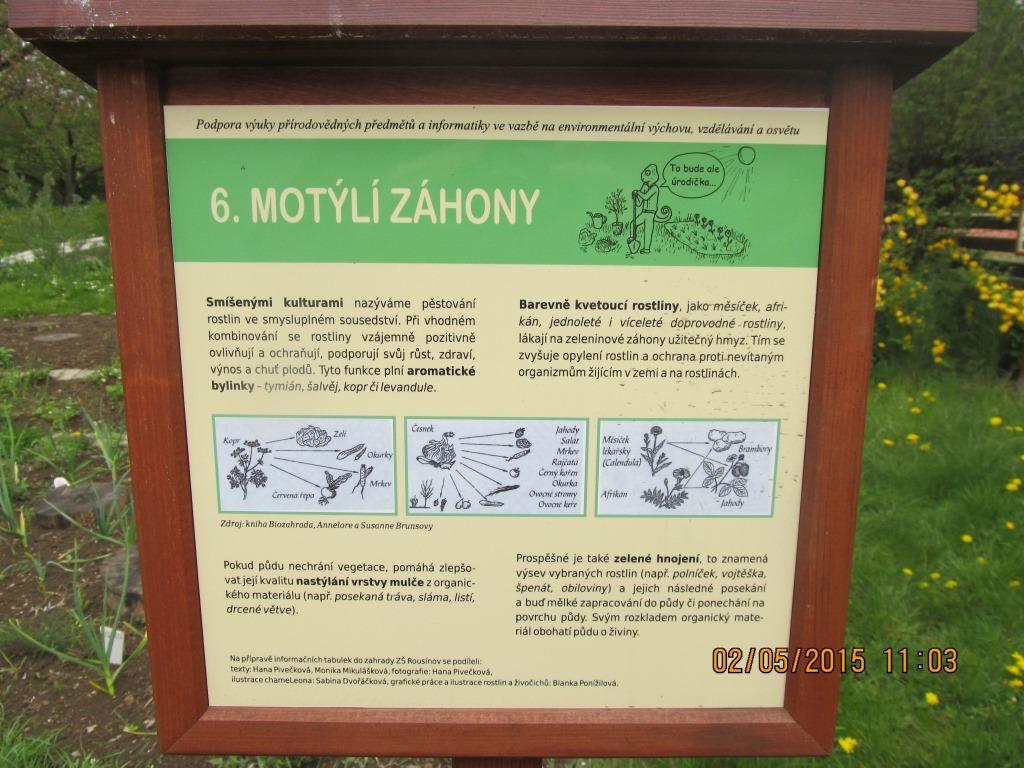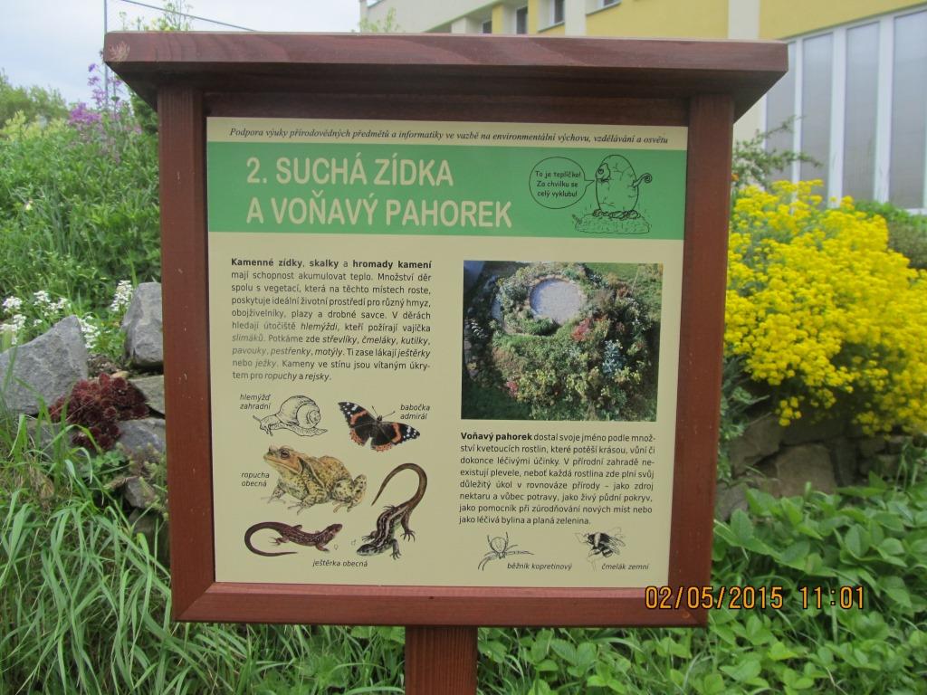 5. 2. 5. 2015 jsem se zúčastnila školení učitelů, kteří se věnují EVVO, kde jsem prezentovala akce, které pro naše žáky připravujeme v rámci EVVO. Posílám fotky přírodní zahrady, mohlo by toto pro nás být inspirací - jak doplnit naši zahradu. Pokud by byl zájem, můžeme v rámci vzdělávání navštívit různé školy, kde podobné zahrady rádi představí našim učitelům.