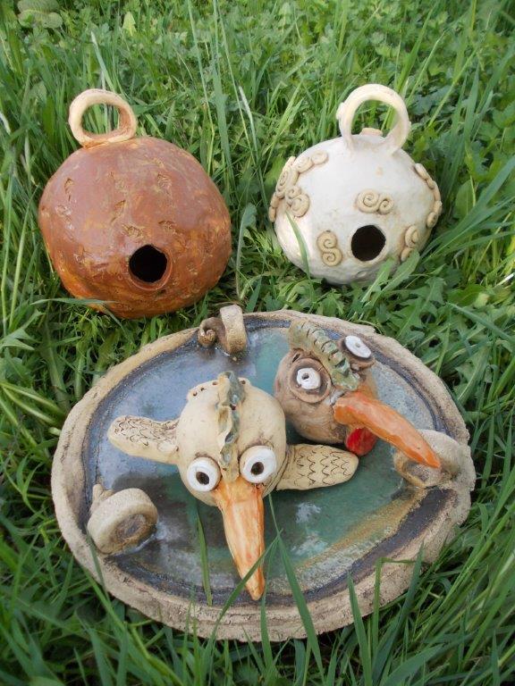 Z jiných kulatých koleček nařezaných z polínek děti vyrobily zvířátka zdrátovaná k sobě a tato zvířátka ted zdobí plot naší zahrady.