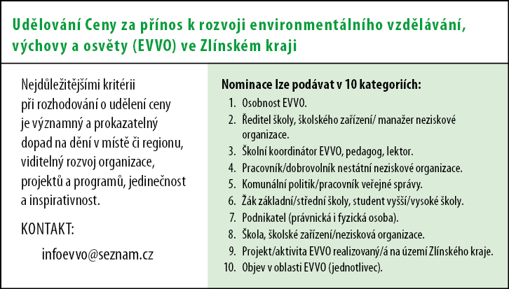 ü Ocenění budou předána v programu XXII. Krajské konference o EVVO ve Zlíně dne 18.10.2023, případně na některé významné regionální akci EVVO.
