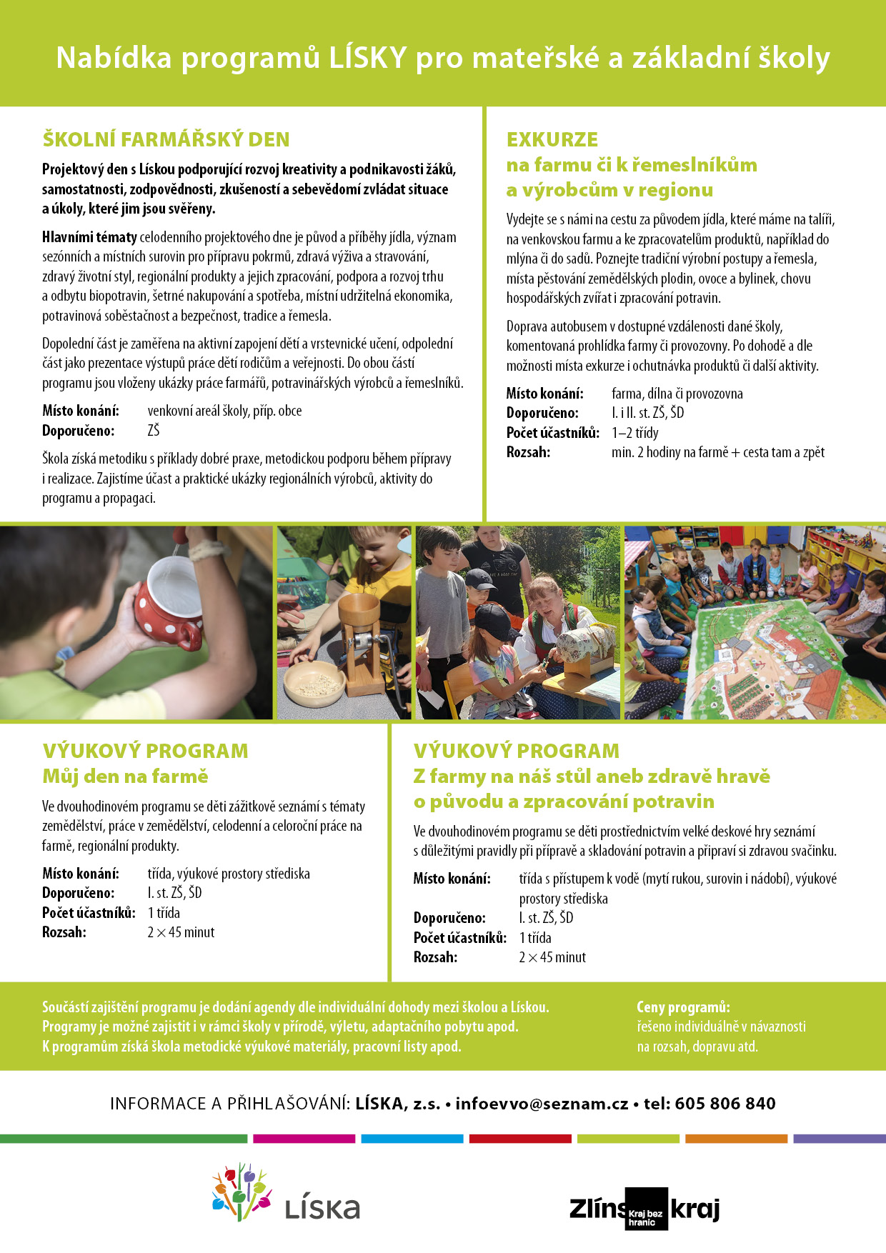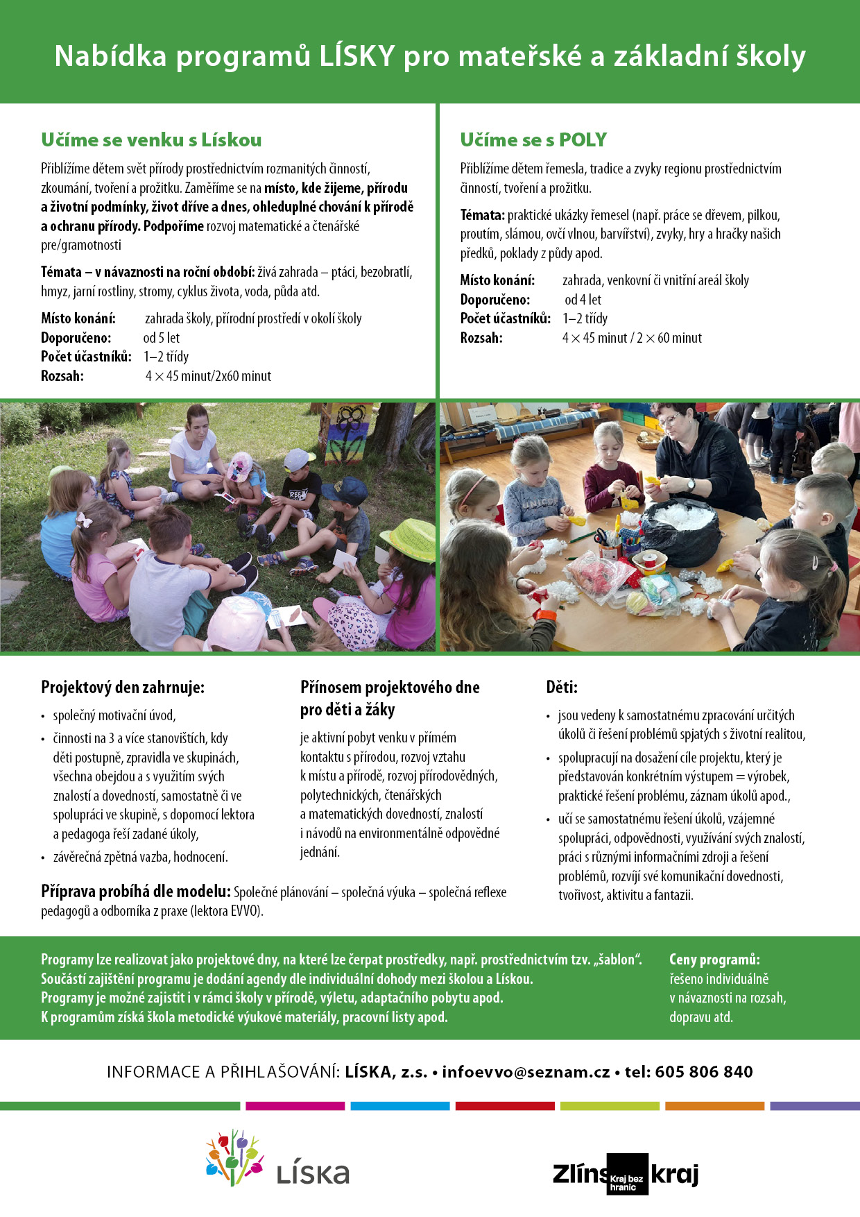 Nabídka programů LÍSKY pro školy na nový školní rok.