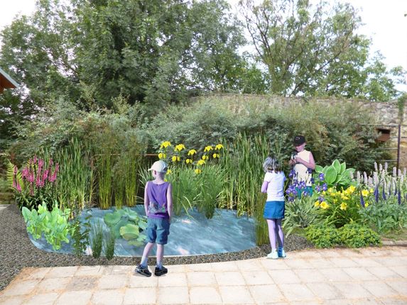 Návrh budoucího jezírka v přírodní zahradě při MŠ v Uherském Brodu, autorka: ing. arch. Dana Václavíková