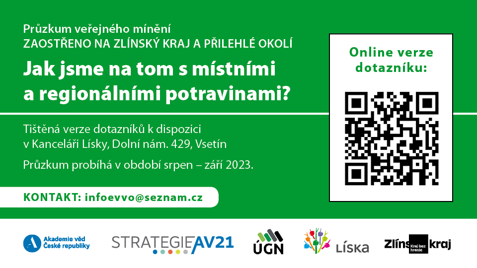obracíme se na Vás s prosbou o vyplnění krátkého dotazníku, který se týká Vašeho postoje k regionálním a místním výrobkům a službám v rámci Zlínského kraje či jeho přilehlého okolí.
