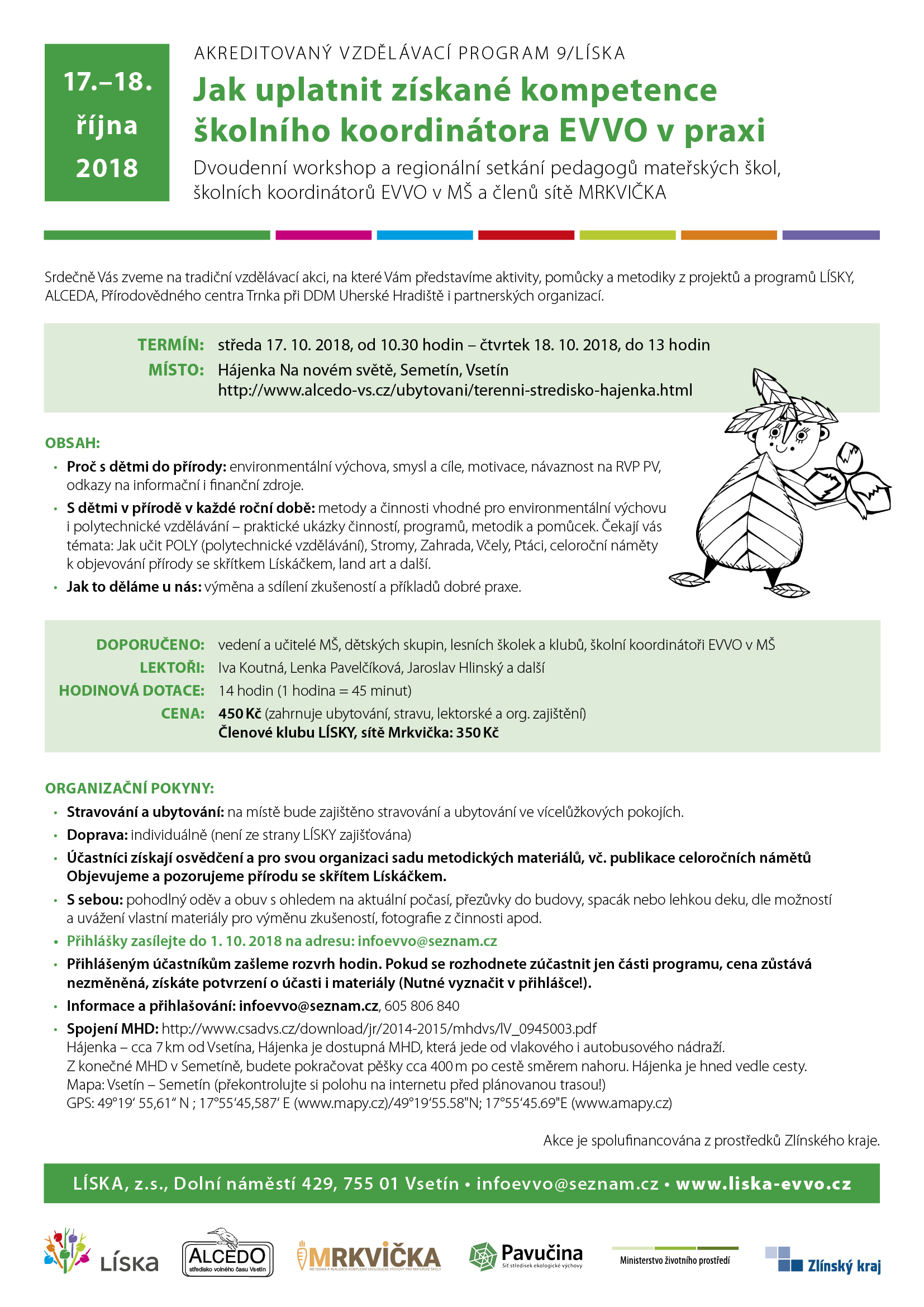 Jak uplatnit získané kompetence školního koordinátora EVVO v praxi. Akreditovaný vzdělávací dvoudenní workshop 9/LÍSKA .