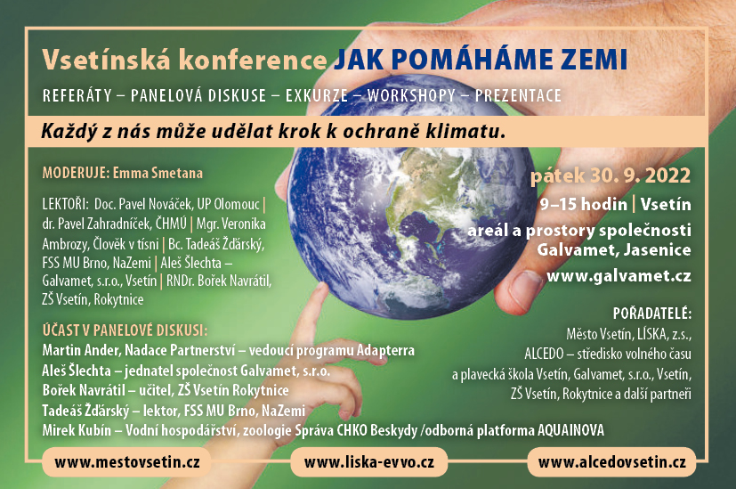 Zveme Vás na Vsetínskou konferenci JAK POMÁHÁME ZEMI - KAŽDÝ Z NÁS MŮŽE UDĚLAT KROK K OCHRANĚ KLIMATU