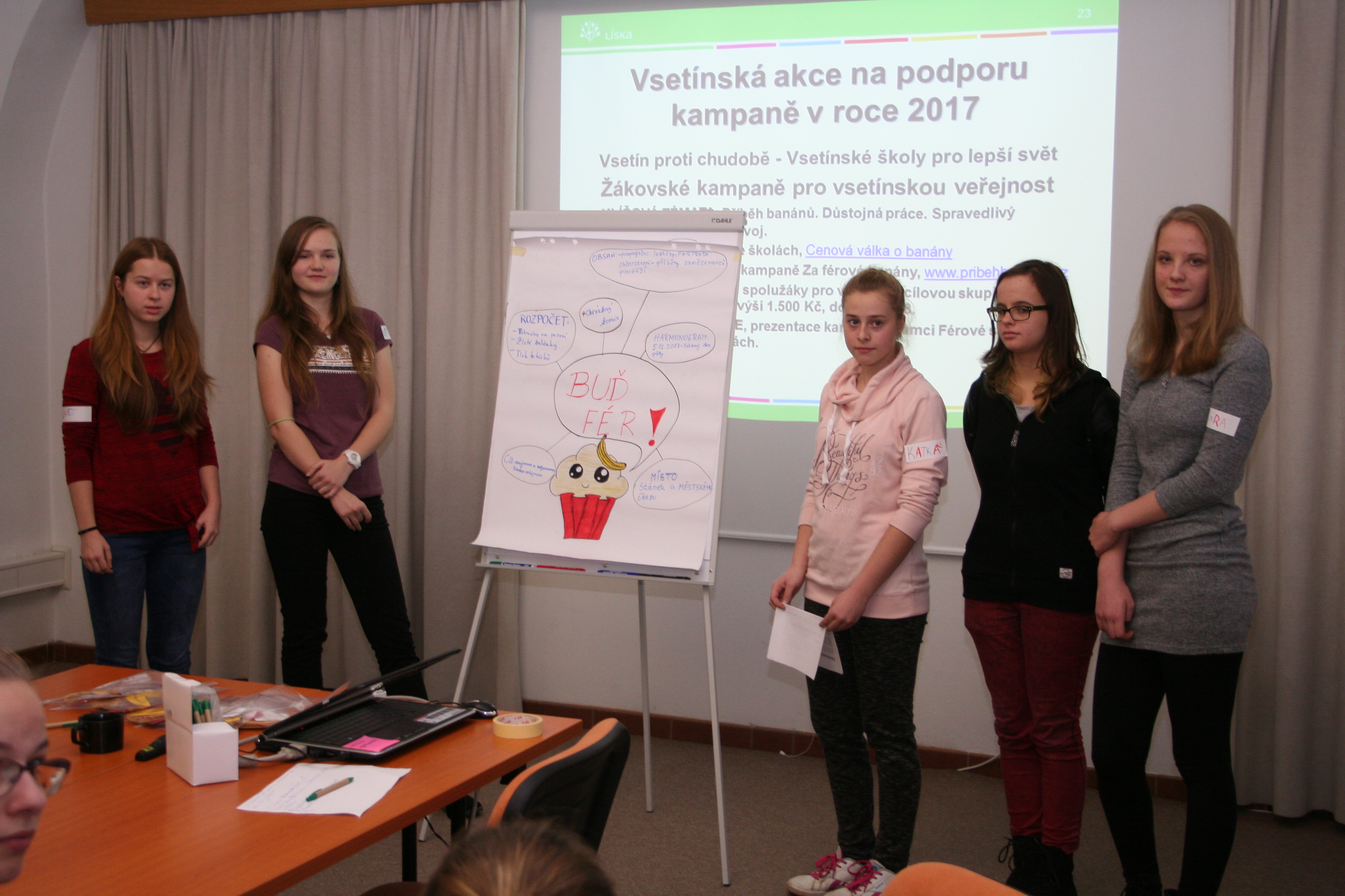 Do letošního ročníku se zapojilo 5 vsetínských základních škol, které vyslaly pětičlenné skupiny žáků. Po úvodních hrách sloužících ke vzájemnému seznámení přišlo na řadu představení kampaně Česko proti chudobě s následným zaměřením se na letošní hlavní téma, kterým byly férové banány. Žáci dostali za úkol vytvořit návrh kampaně, kterou následně budou za spolupráce svých spolužáků šířit mezi vybrané cílové skupiny. Vzniklo zde spoustu zajímavých nápadů, ať už se jedná o oslovování veřejnosti, propagaci tématu přes sociální sítě, letákové kampaně, či vysvětlování problematiky skrz zakoupené či doma připravené fairtradové produkty.